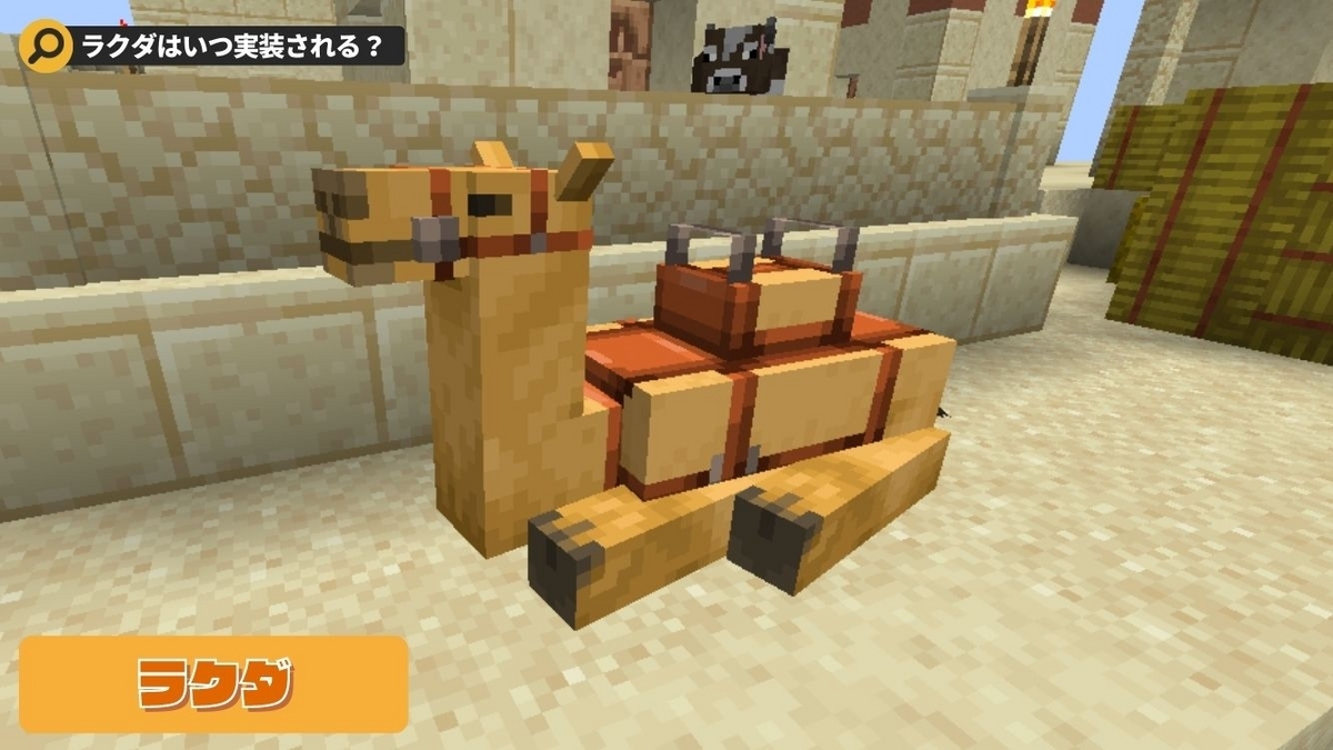 ラクダはver1.20のアップデートで実装予定の新Mobになります。馬と同じように乗ることができます。