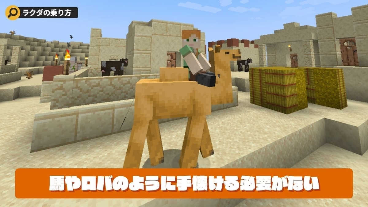 - ラクダはマイクラ史上初のプレイヤーが二人乗りできるMob
