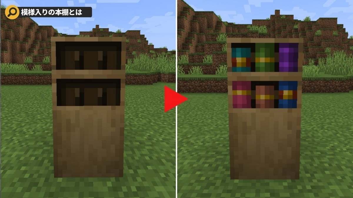 【マイクラ1.20】実際に本を収納できる本棚が登場!「模様入りの本棚」の使い方や入手方法を解説!