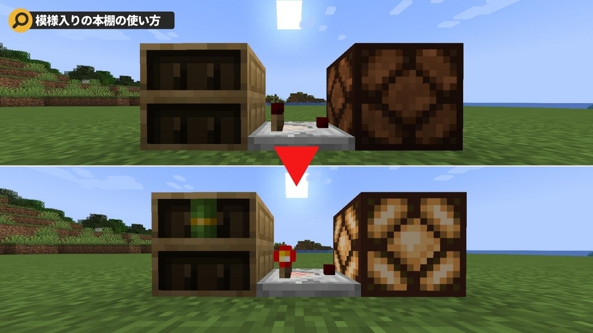 - 模様入りの本棚はver1.20の大型アップデートで実装予定
