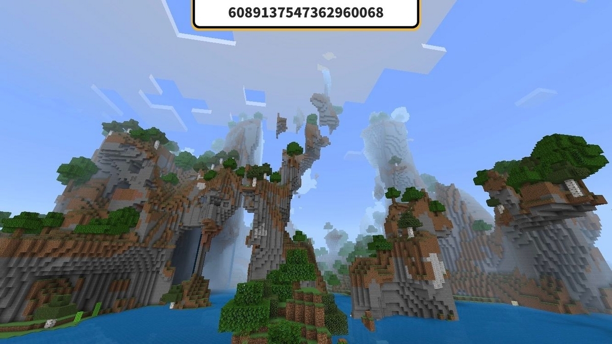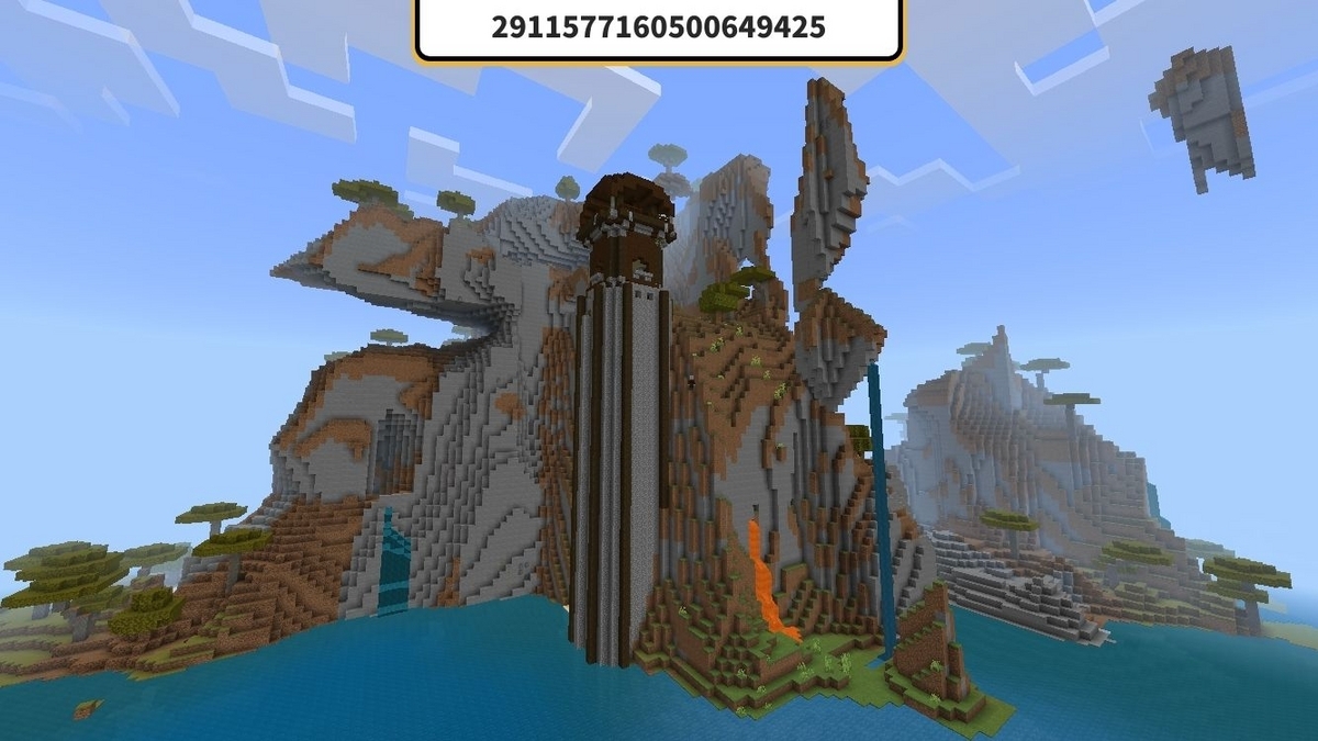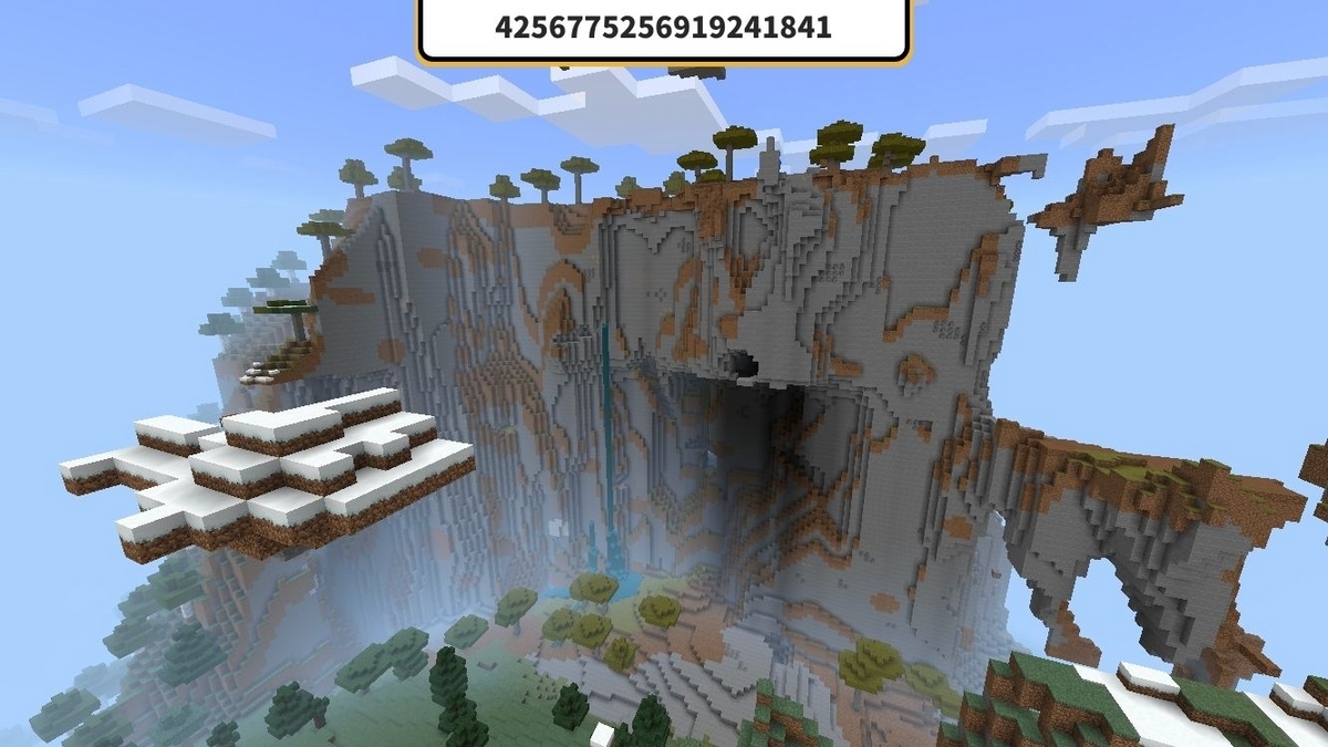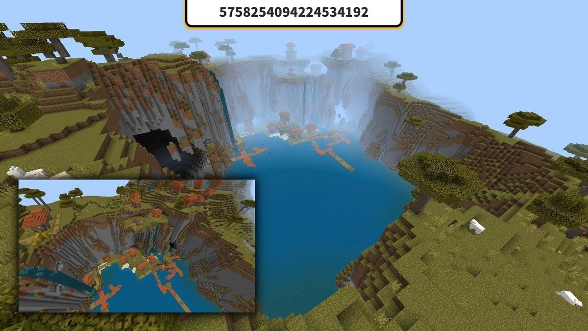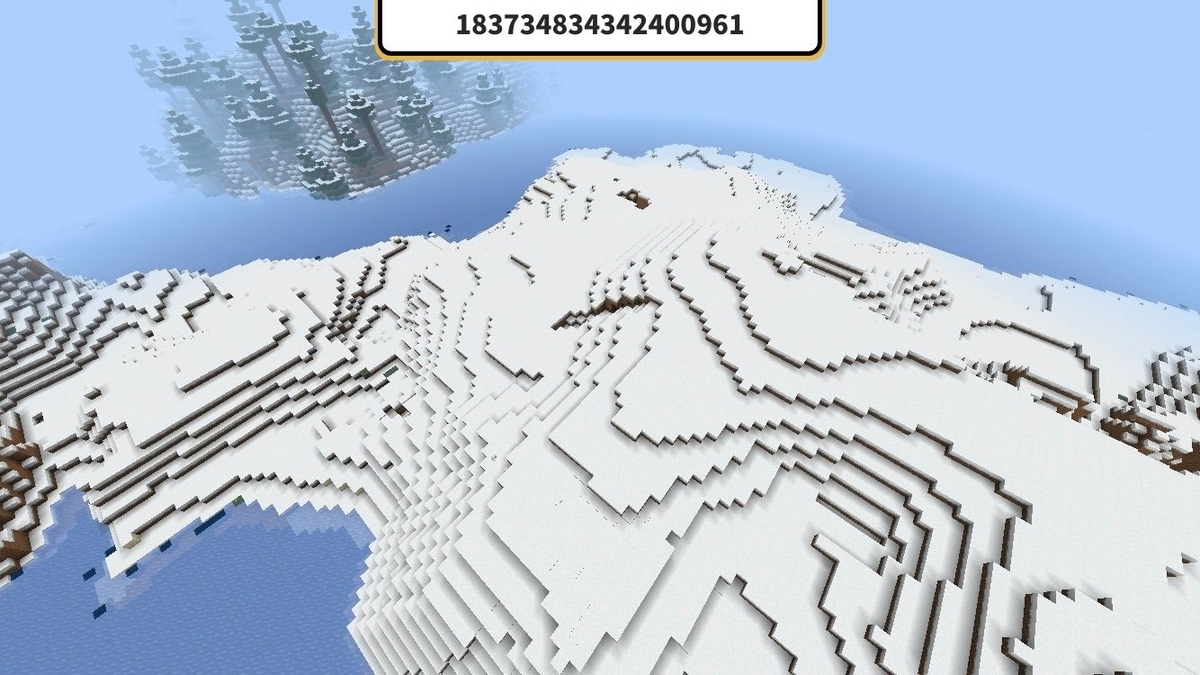 「君の名は」を思い起こすような超巨大なカルデラ地形と中央には巨大湖が生成される、超絶景シード値になります。