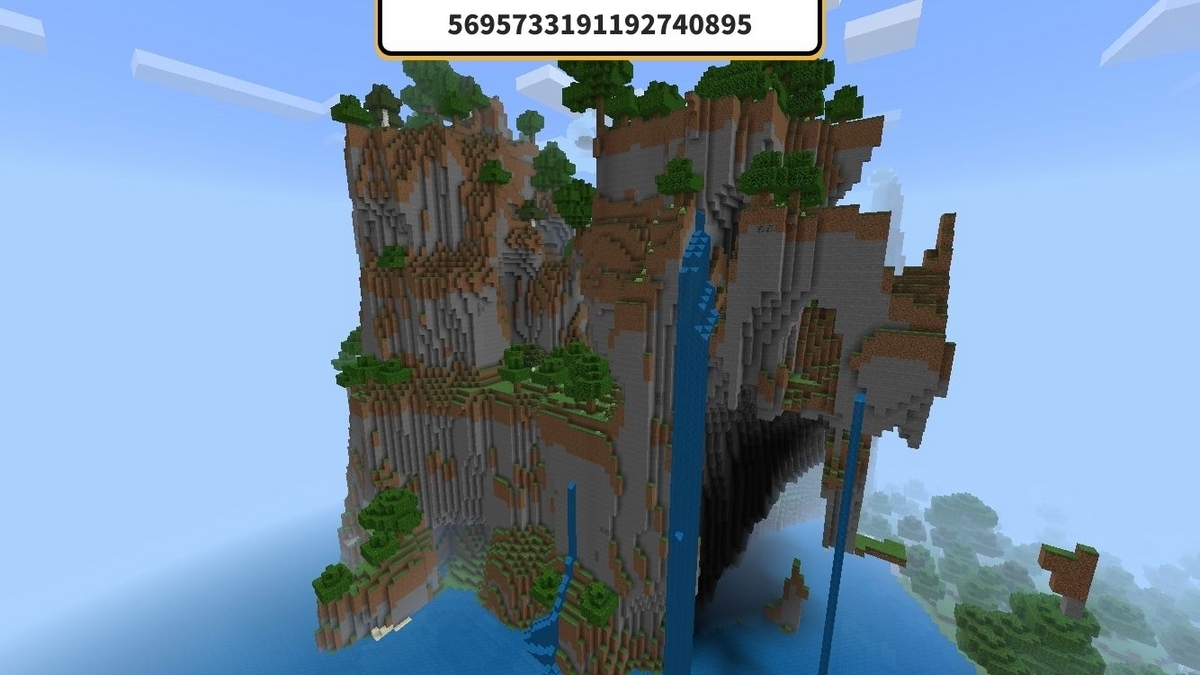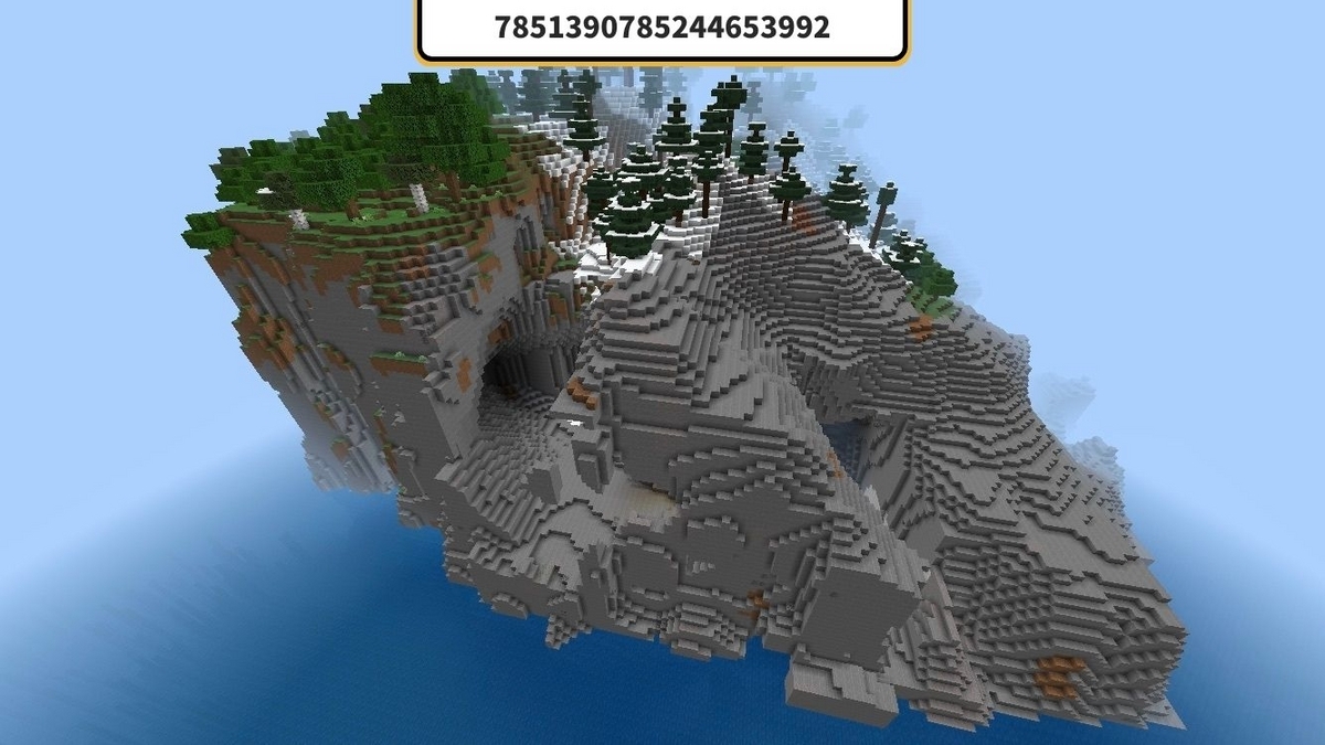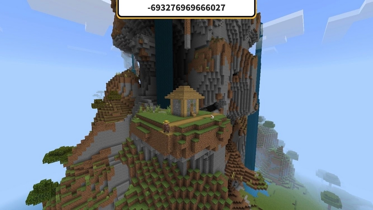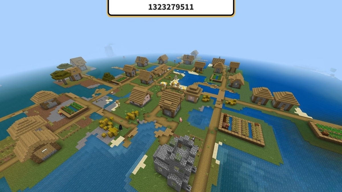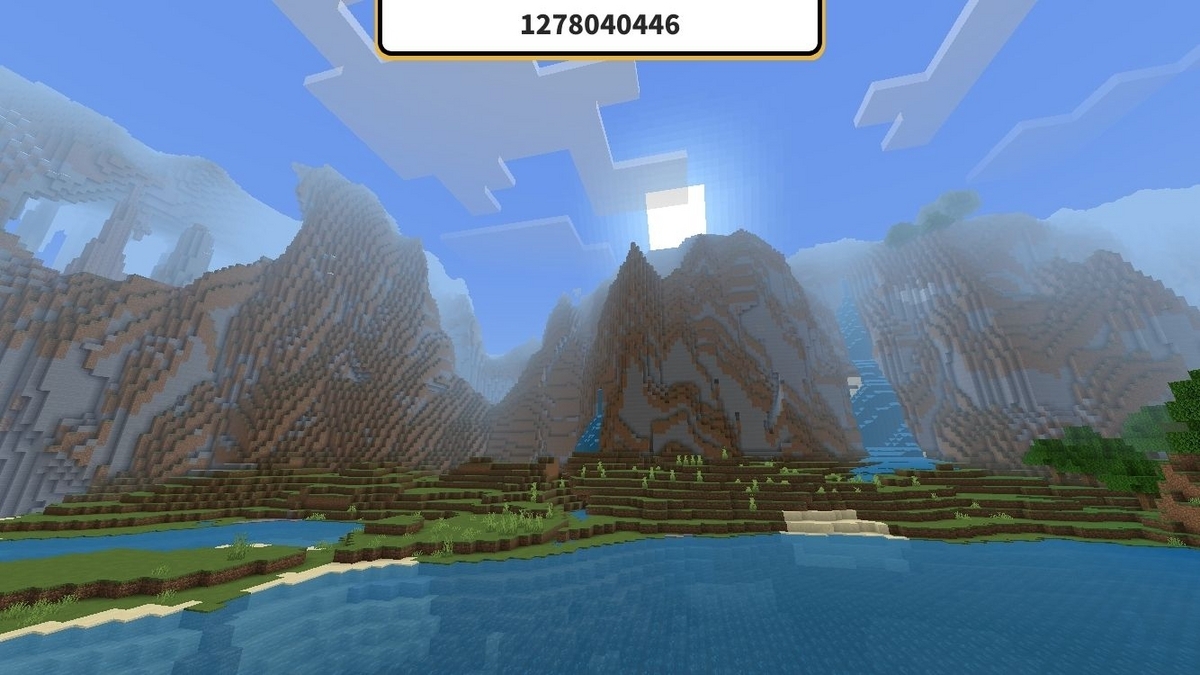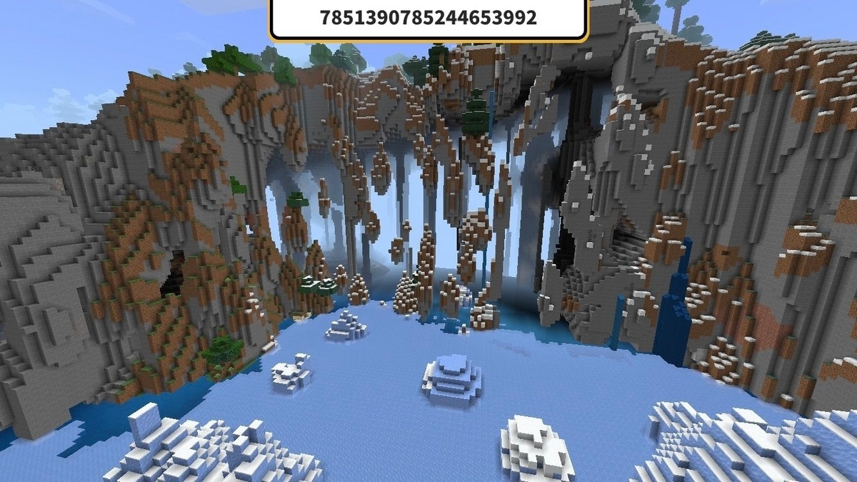 「君の名は」を思い起こすような超巨大なカルデラ地形と中央には巨大湖が生成される、超絶景シード値になります。