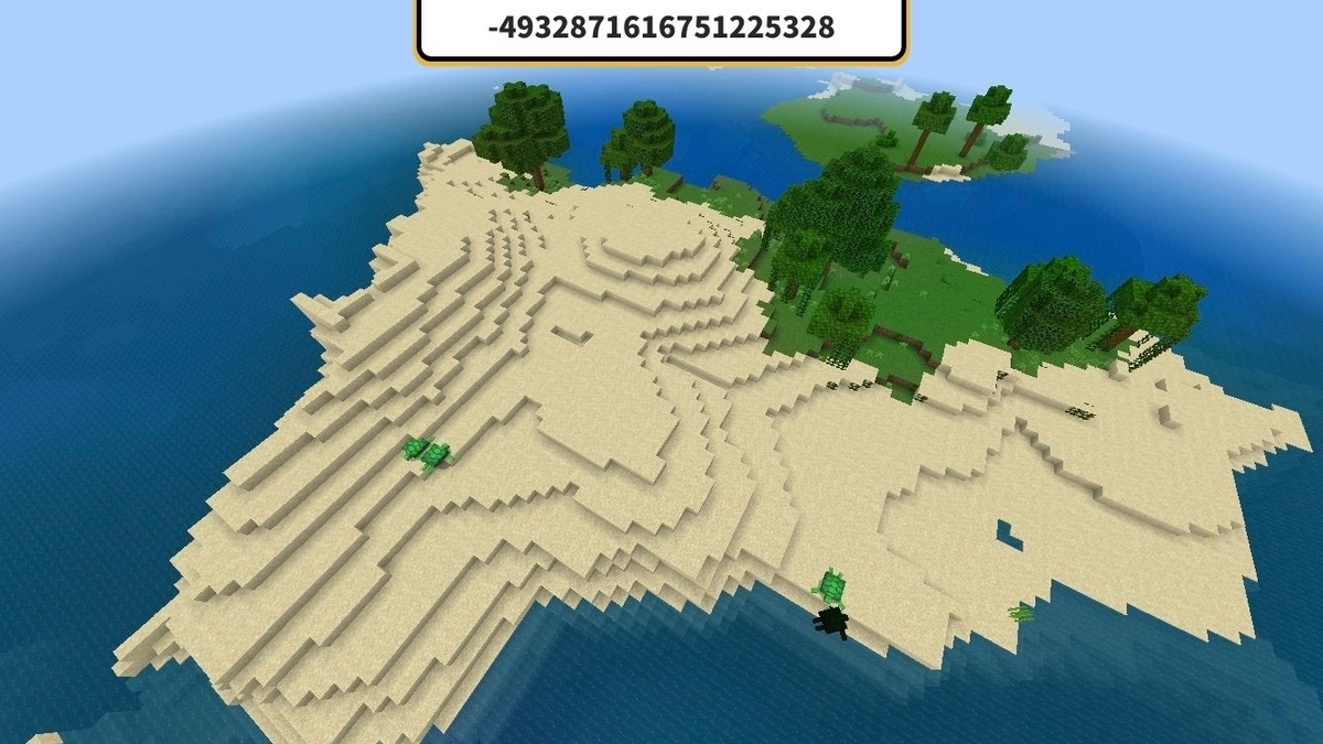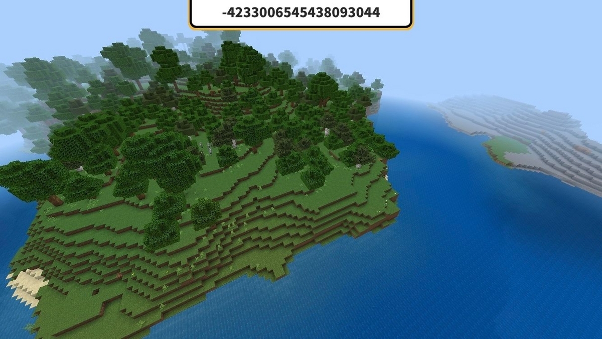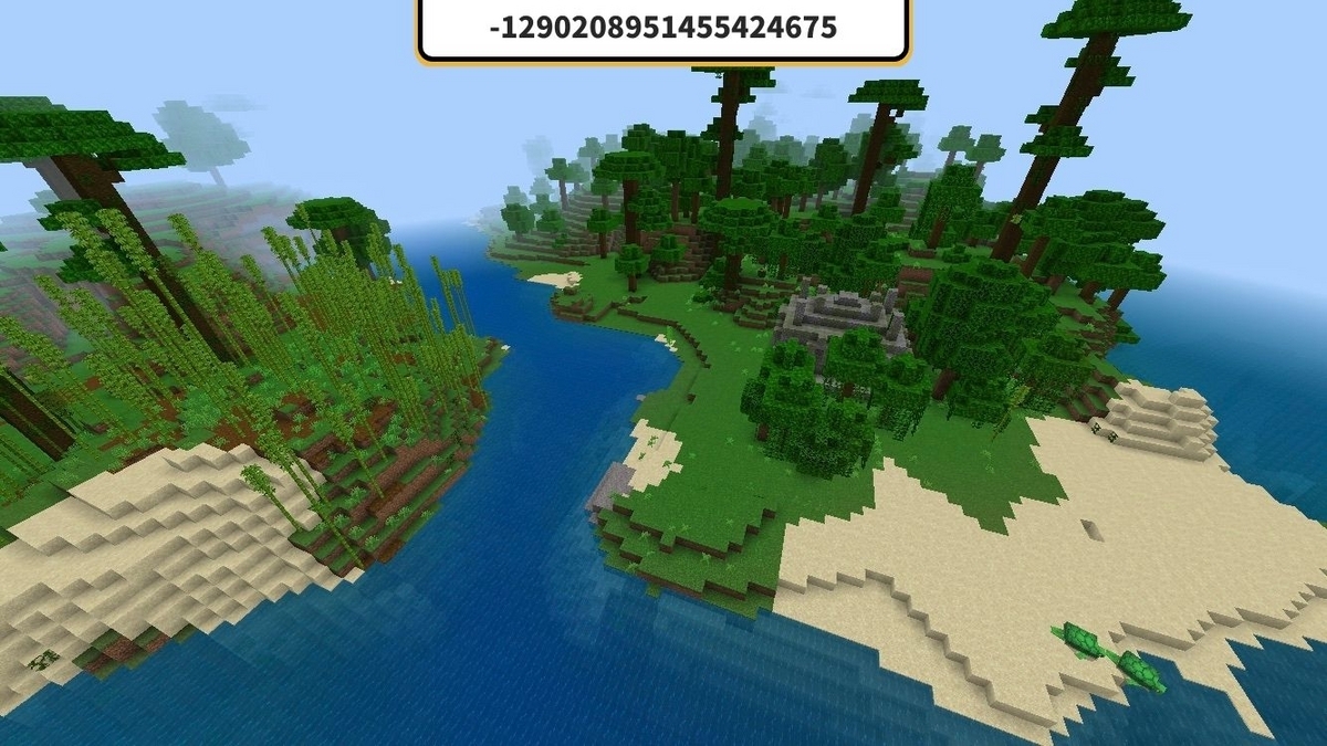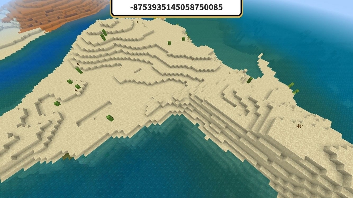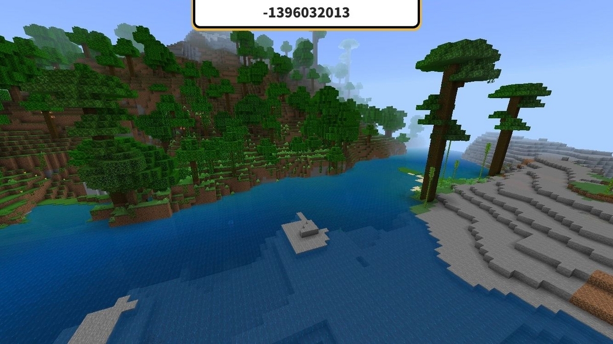 「君の名は」を思い起こすような超巨大なカルデラ地形と中央には巨大湖が生成される、超絶景シード値になります。