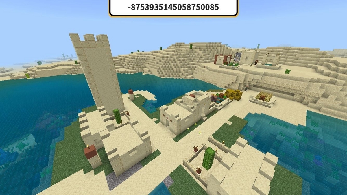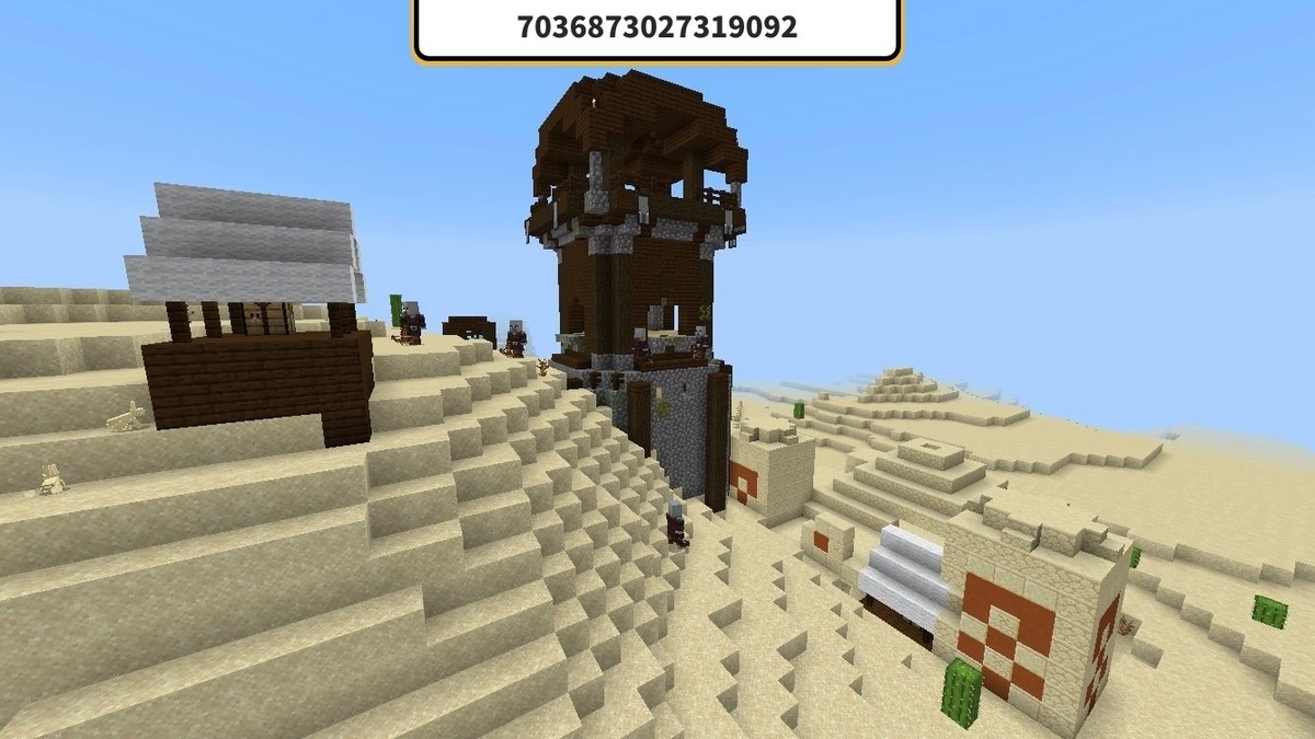 砂漠の村の近くには、座標(170 71 160)の位置にピラミッドも生成されています。