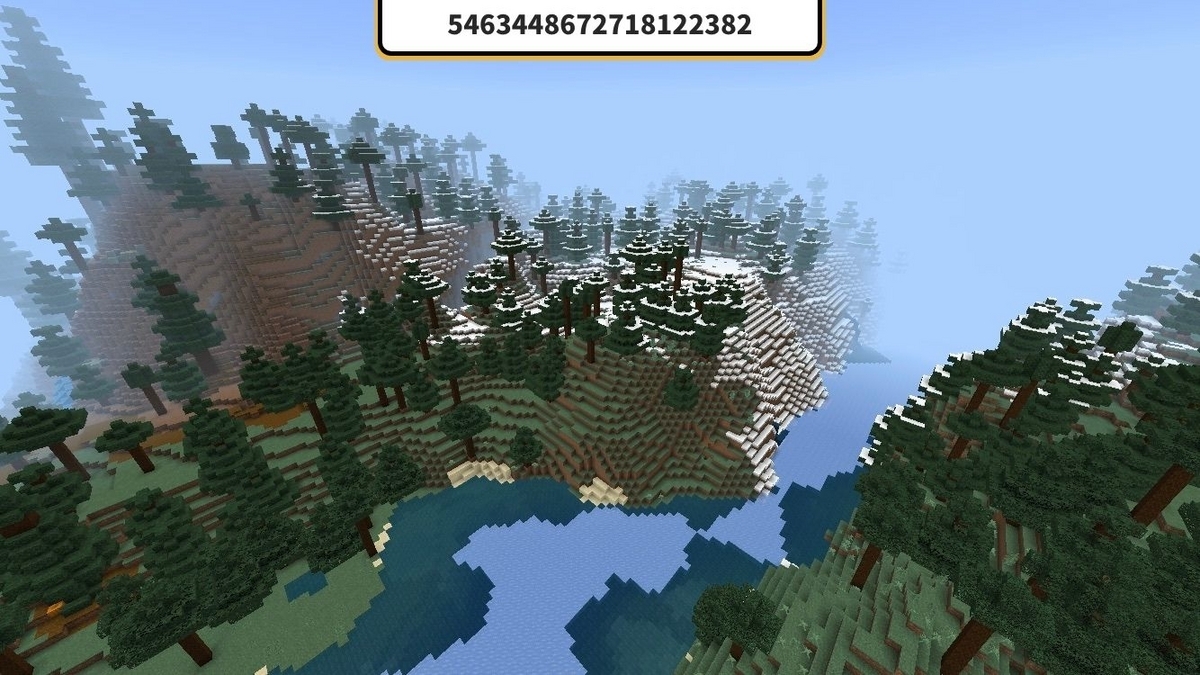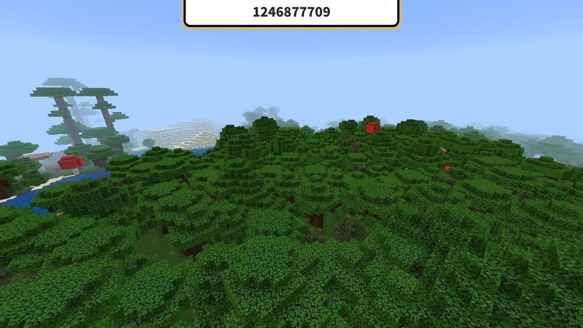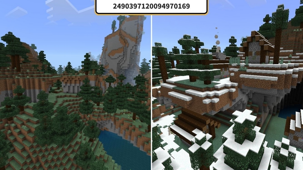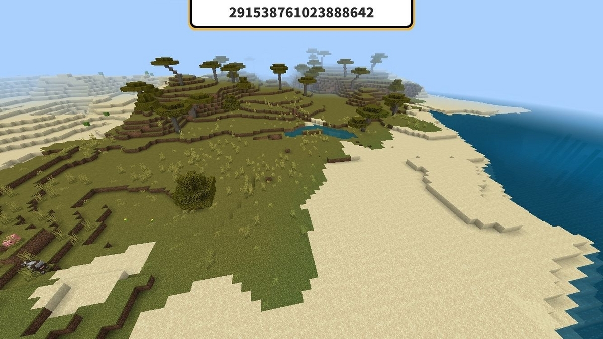 初期スポーン地点付近のあちらこちらに絶景ポイントがあるシード値になります。