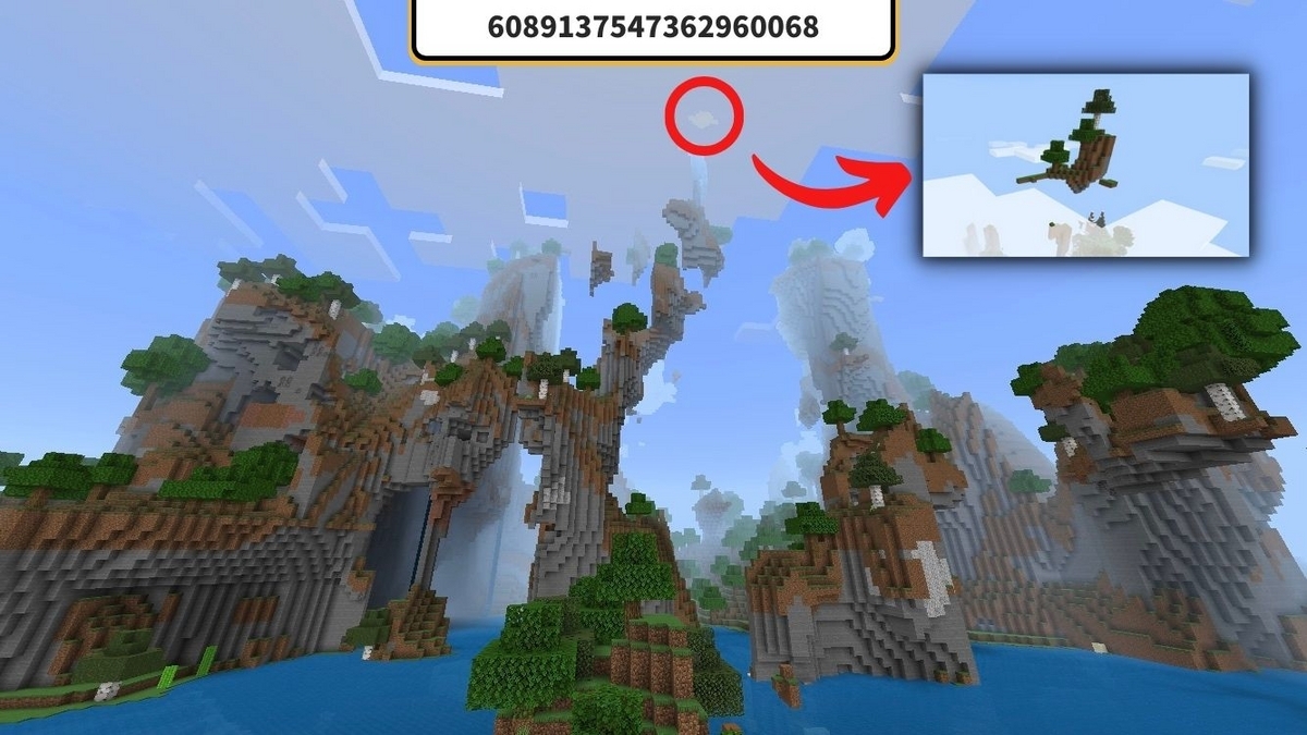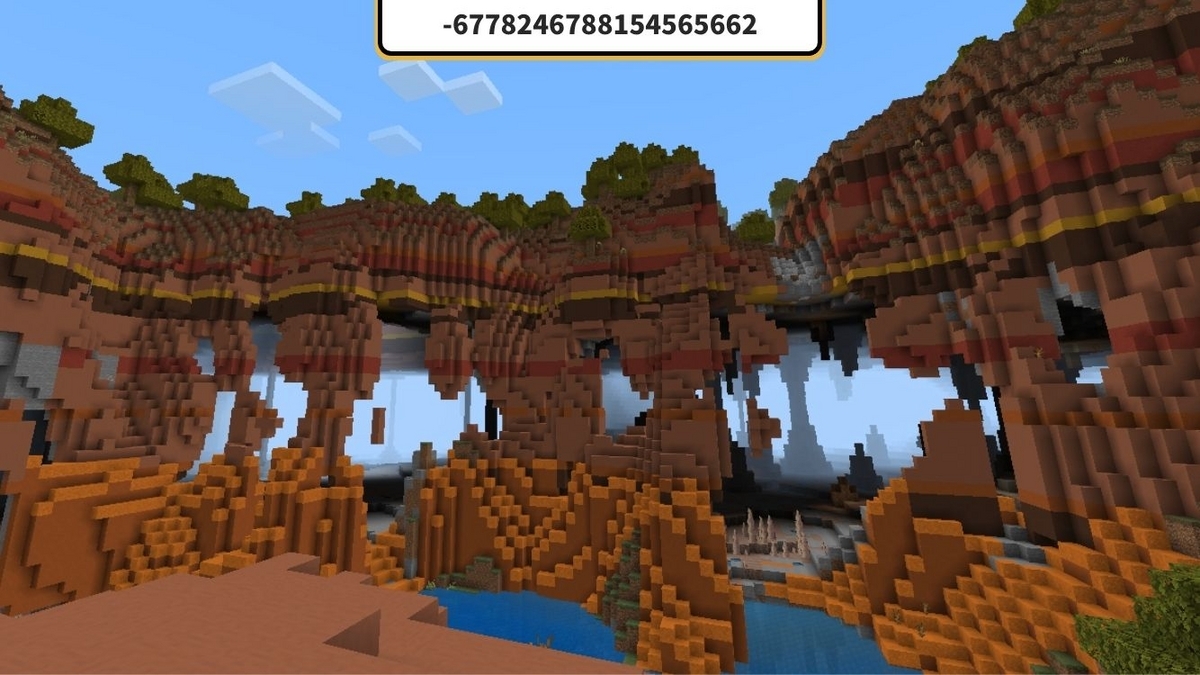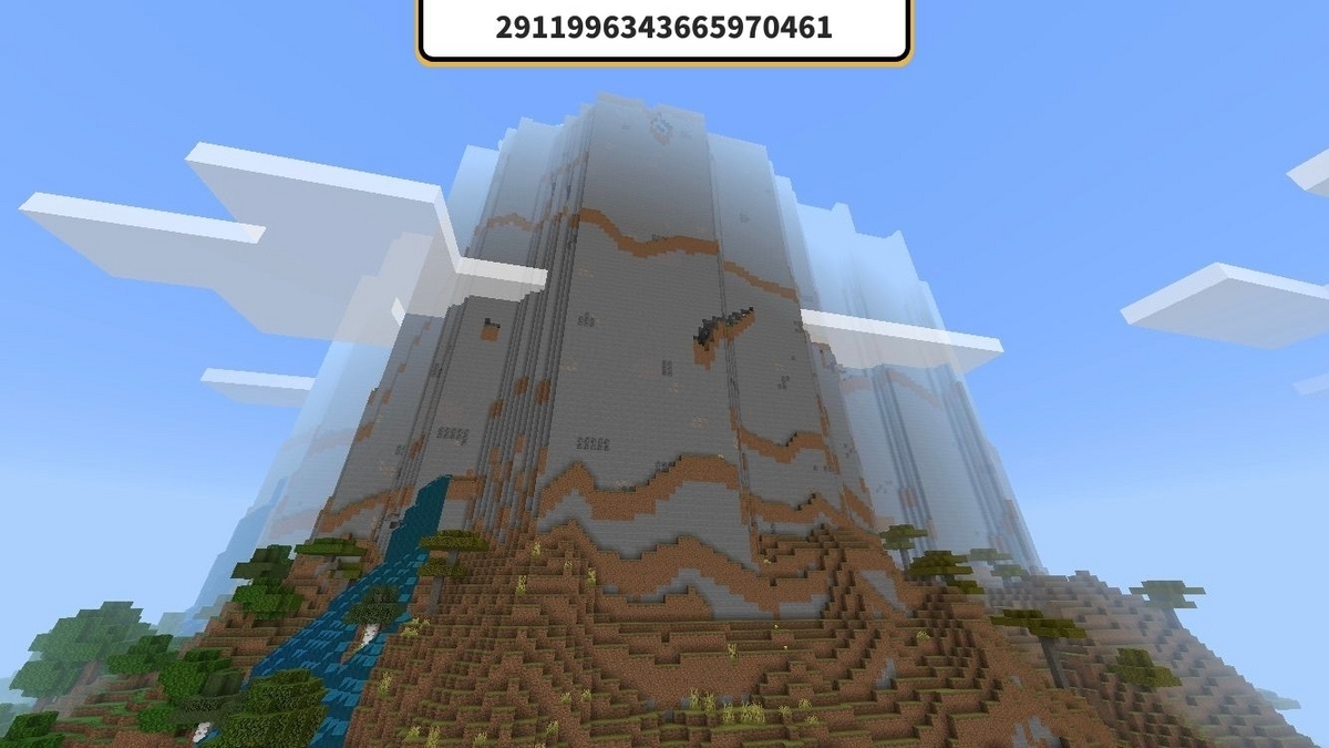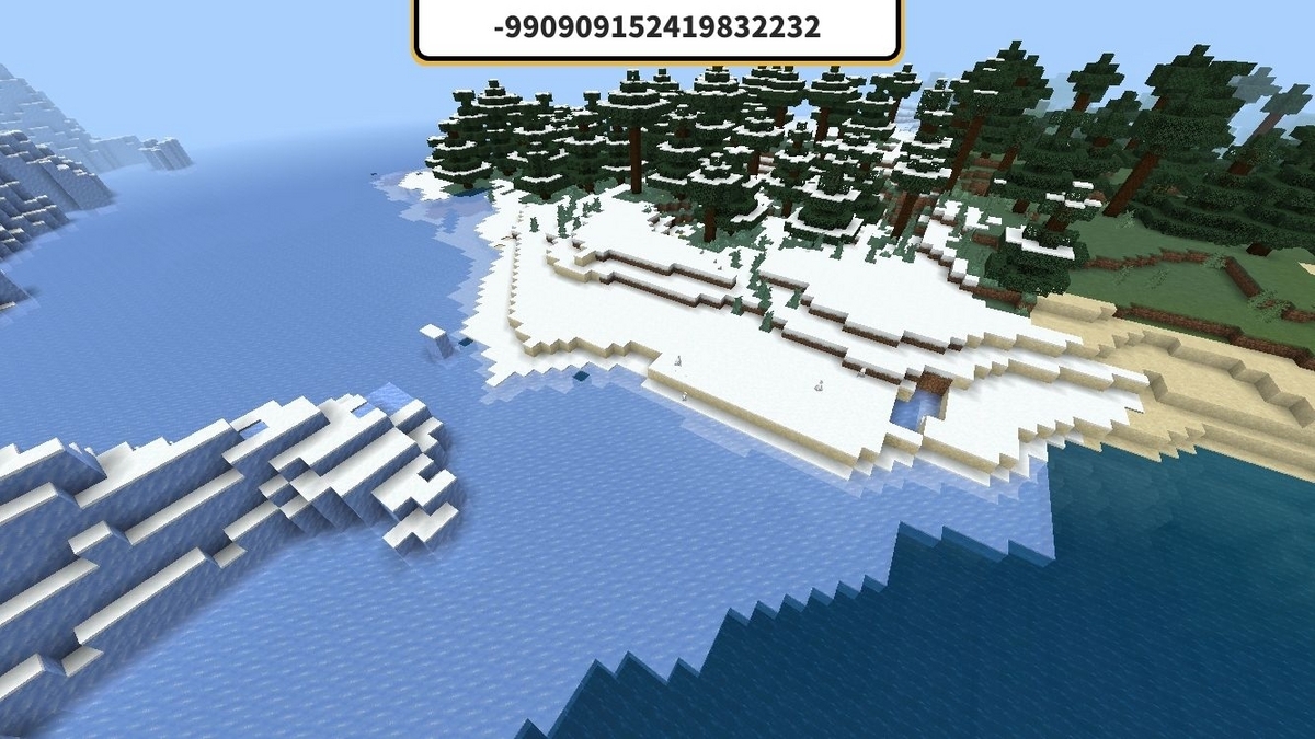 初期スポーン地点付近のあちらこちらに絶景ポイントがあるシード値になります。