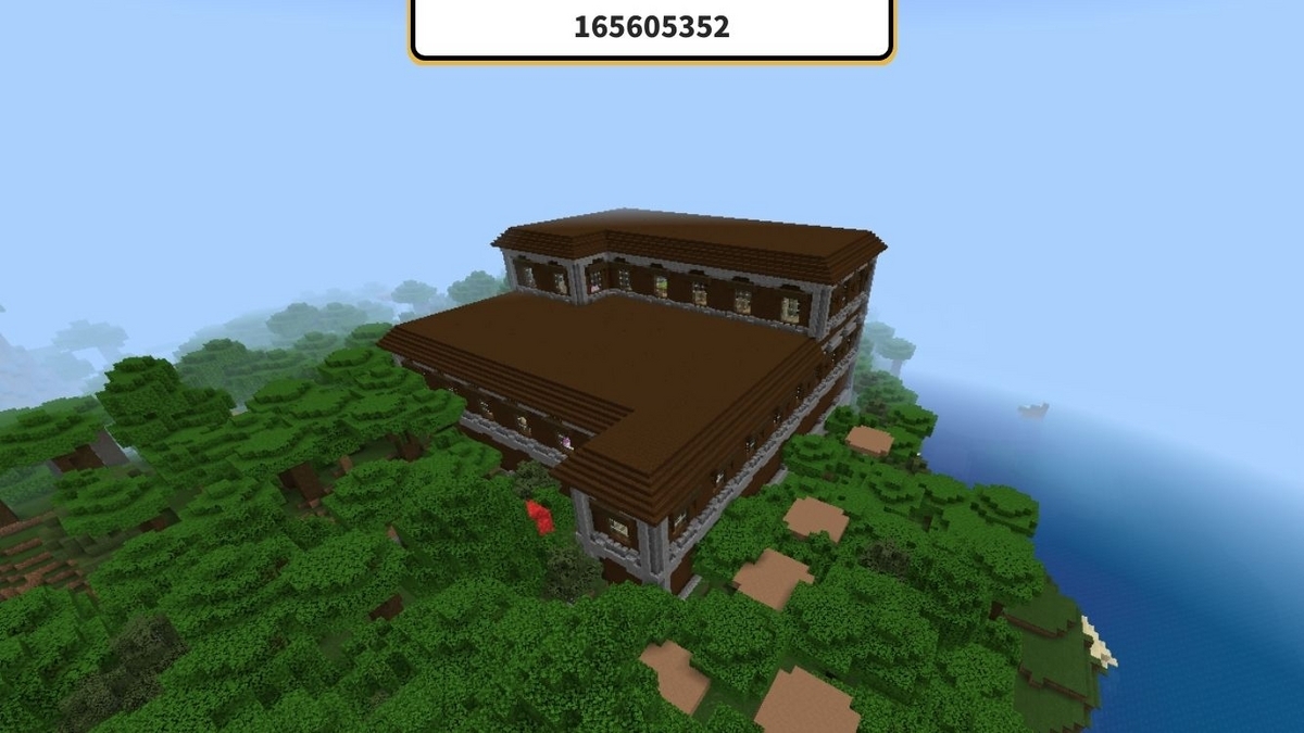 初期スポーン地点の近くには村があります。さらには、村から見える位置に森の洋館も生成されています。