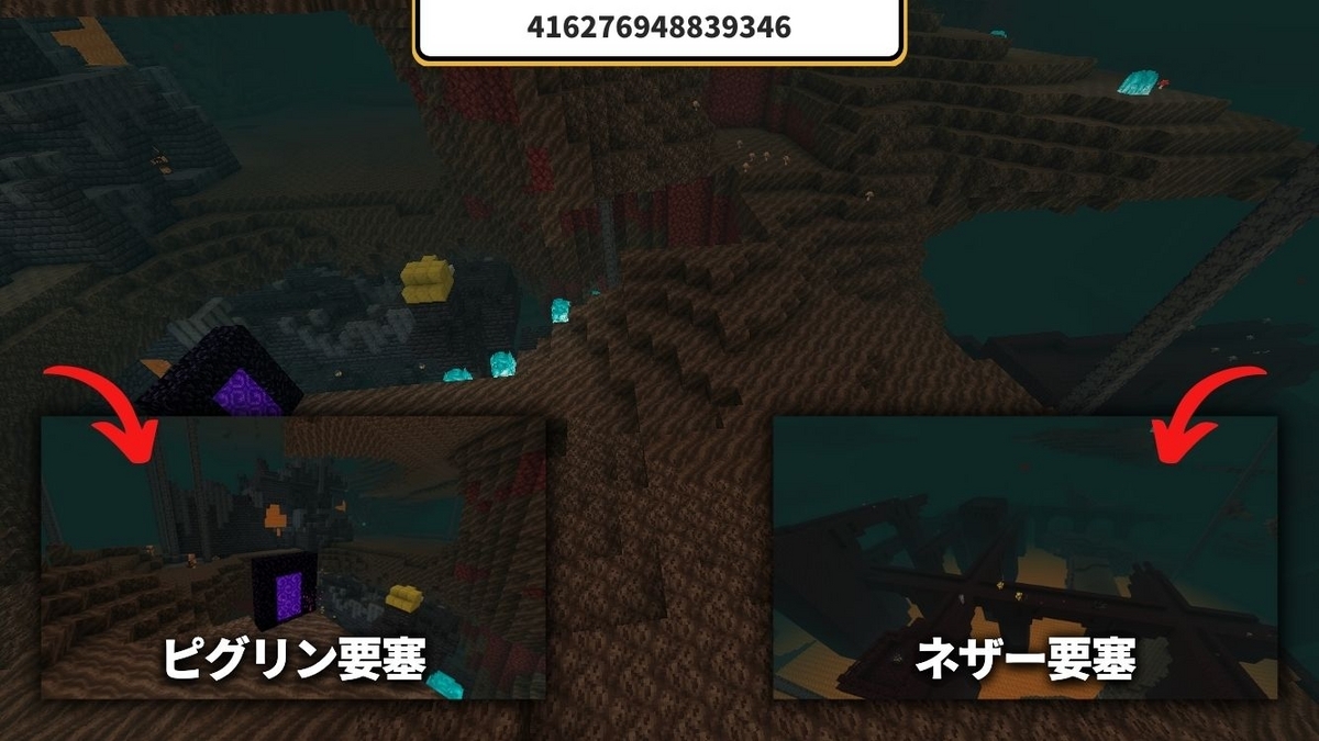 ネザー要塞とピグリン要塞が合体して生成されているシード値になります。